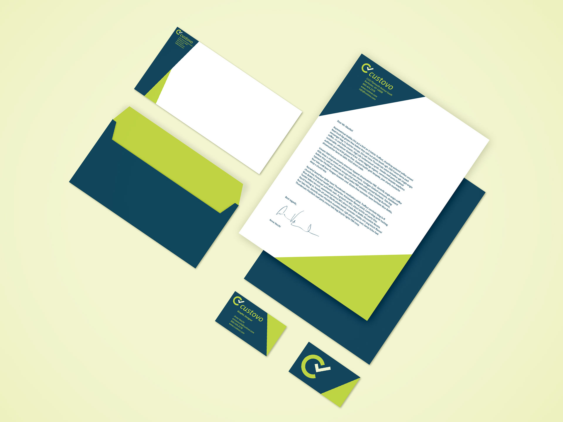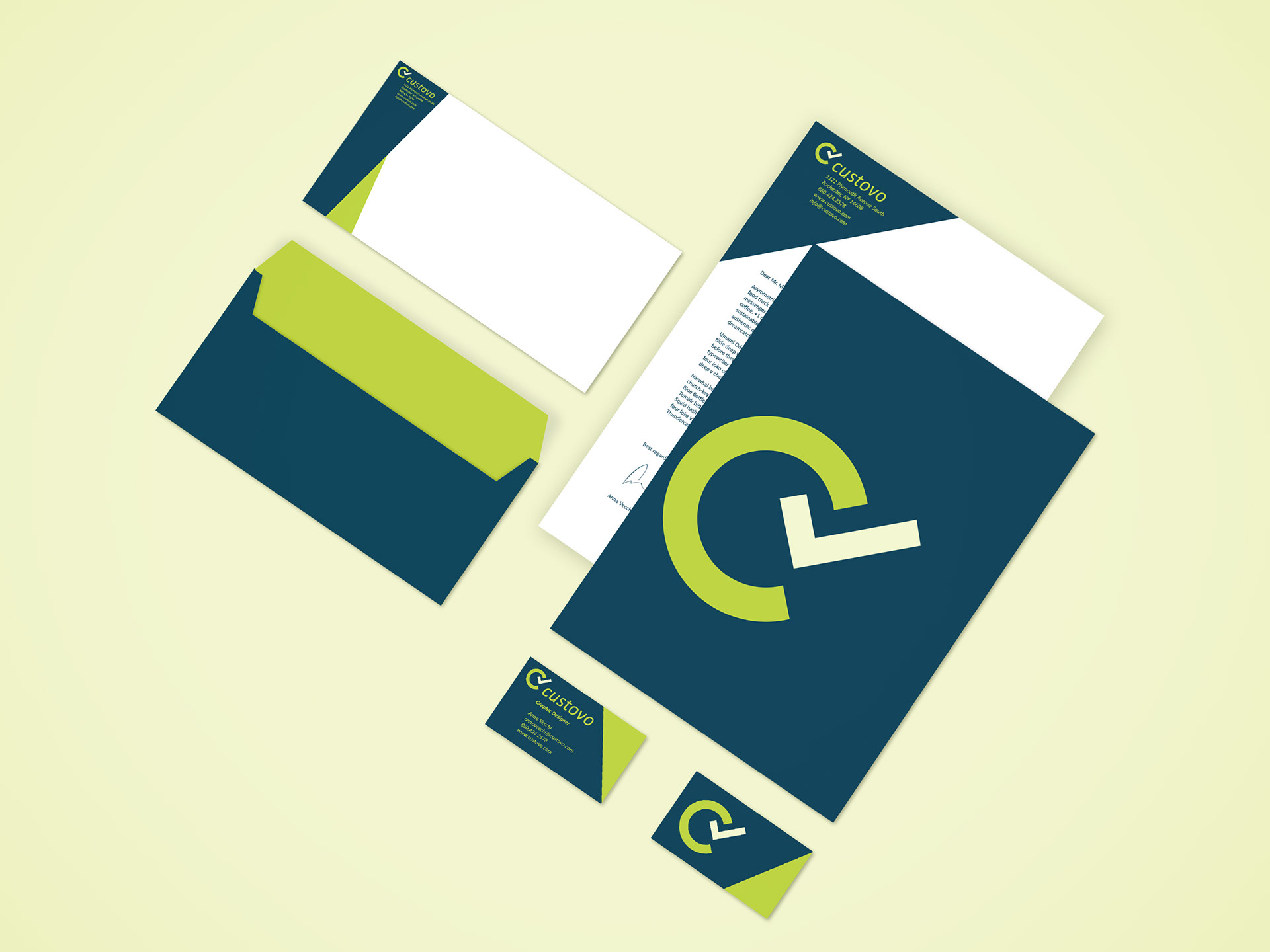 Stationery/branding and social media representation mock ups of my graduate thesis creation, Custovo.