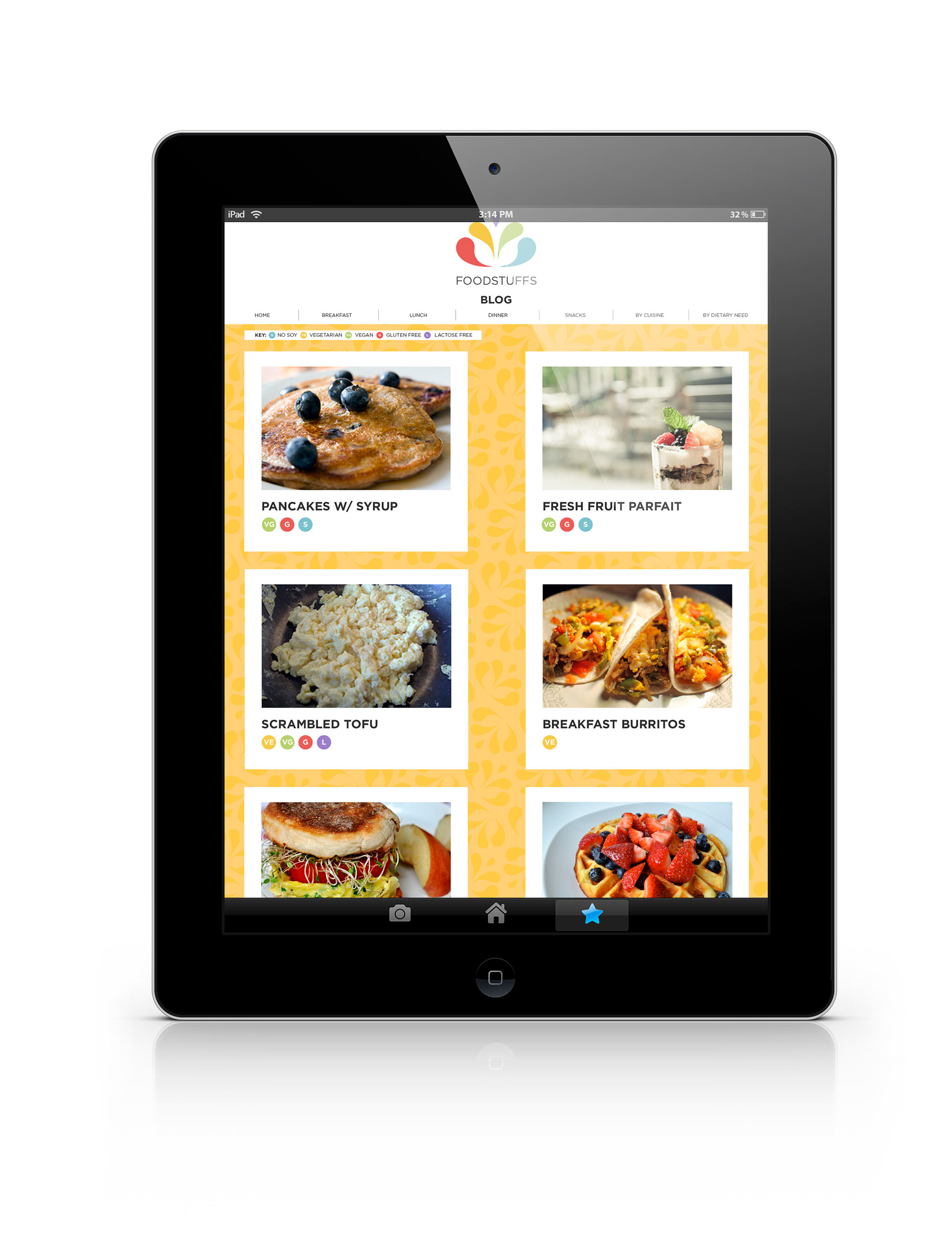 The user interfaces for both tablet and desktop versions of the Foodstuffs website. Foodstuffs is my personal creation – its purpose is to deliver healthy, allergy free, quick to make recipes to various customers with an active and busy lifestyle. Not only would it be a healthier alternative to fast food, but also adhere to all religious and allergen restrictions the user specifies before ordering.